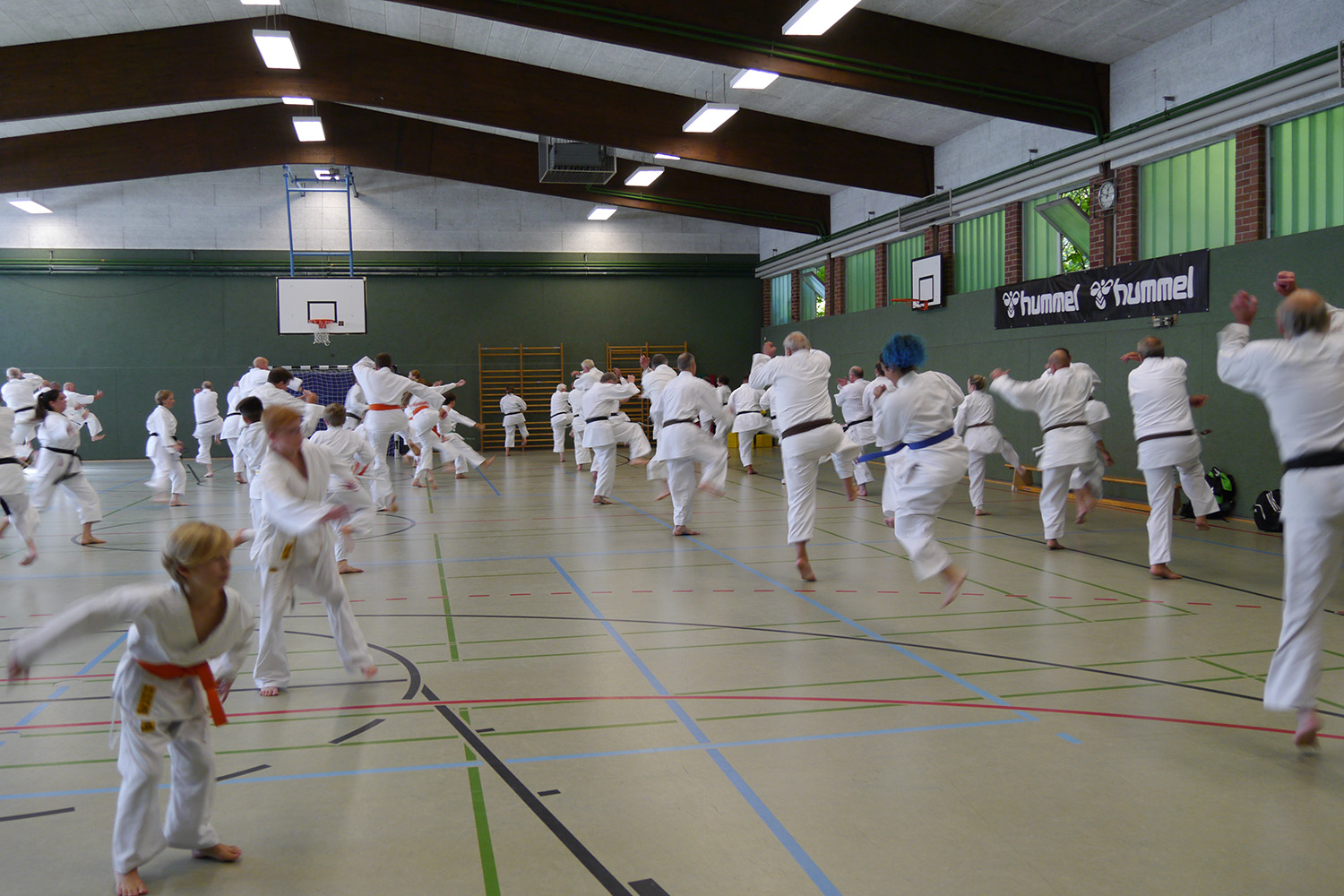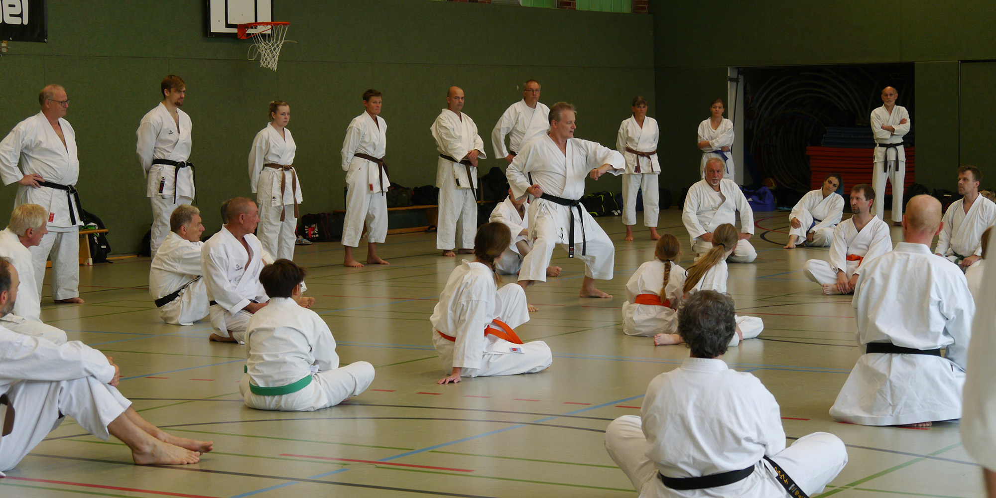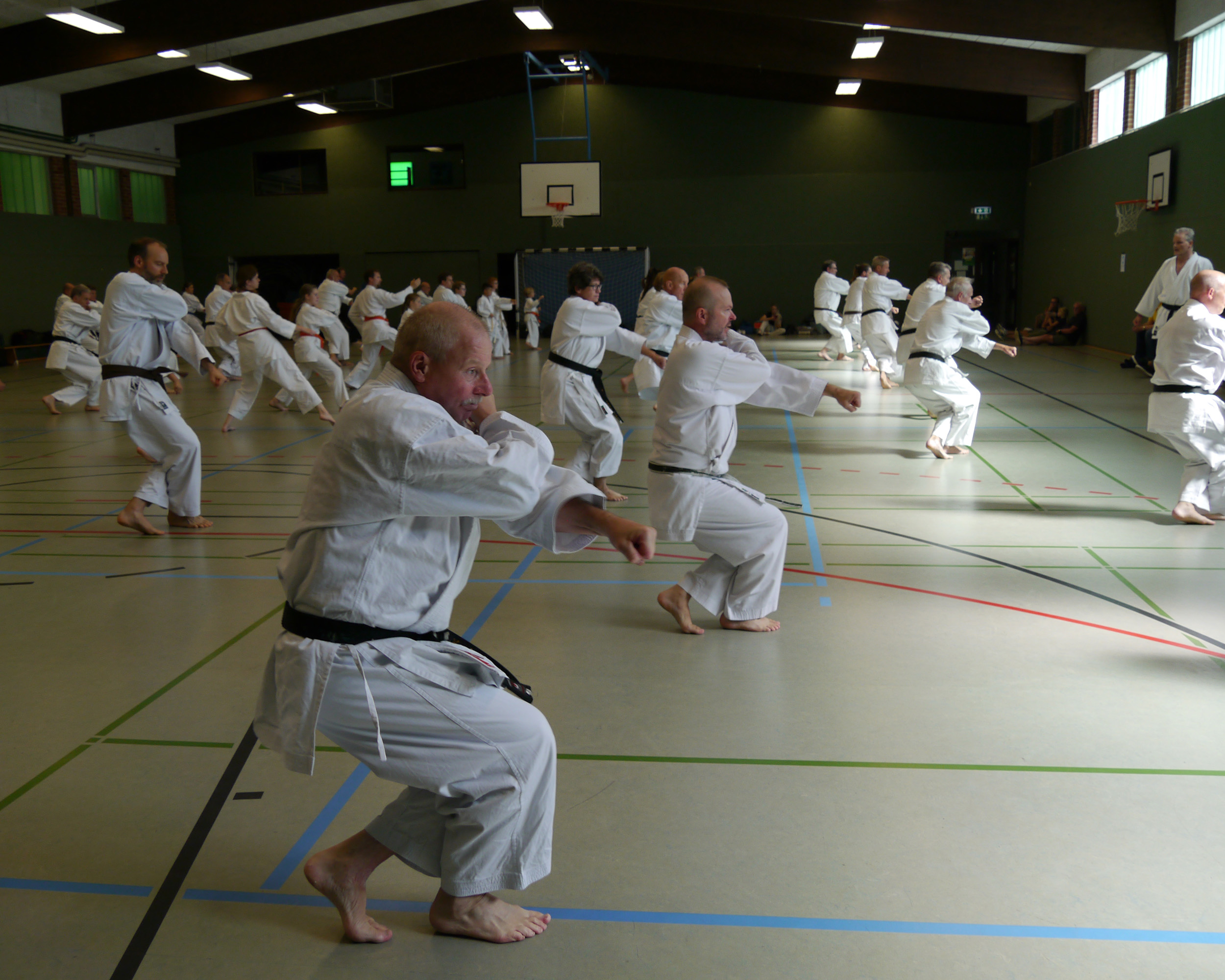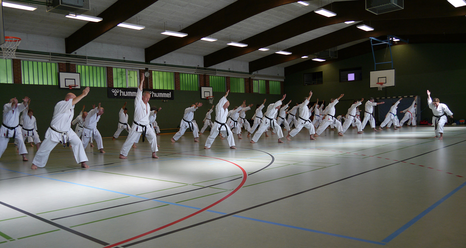 Der Lehrgang fand in den Räumlichkeiten des mediFit statt und wurde vom KDNW Vizepräsident Stefan Krause (7.Dan / Schwarzgurt) geleitet. Der Lehrgang thematisierte die Kata (Abfolge von festgelegten Techniken) „Enpi“. Dazu gab es zunächst ein gemeinsames Aufwärmprogramm von Grün Weiß Trainerin Patricia Schneider mit dem „Kokoro Physical Training“ (ganzheitliches Faszientraining für Kraft, Balance und Flexibilität). Anschließend übernahm der Lemgoer Trainer Stefan Krause. Er brachte den motivierten Karateka den Ablauf der Kata näher. Des Weiteren teilte er sein Wissen im Bereich Bunkai (Anwendung der Technik). Nach der Mittagspause folgte der Bereich Kumite (Freikampf mit Partner). Den Abschluss bildete Grün Weiß Trainer André Dawson mit einer Einheit zur Selbstverteidigung in Bezug auf die zuvor eingeübte Kata.