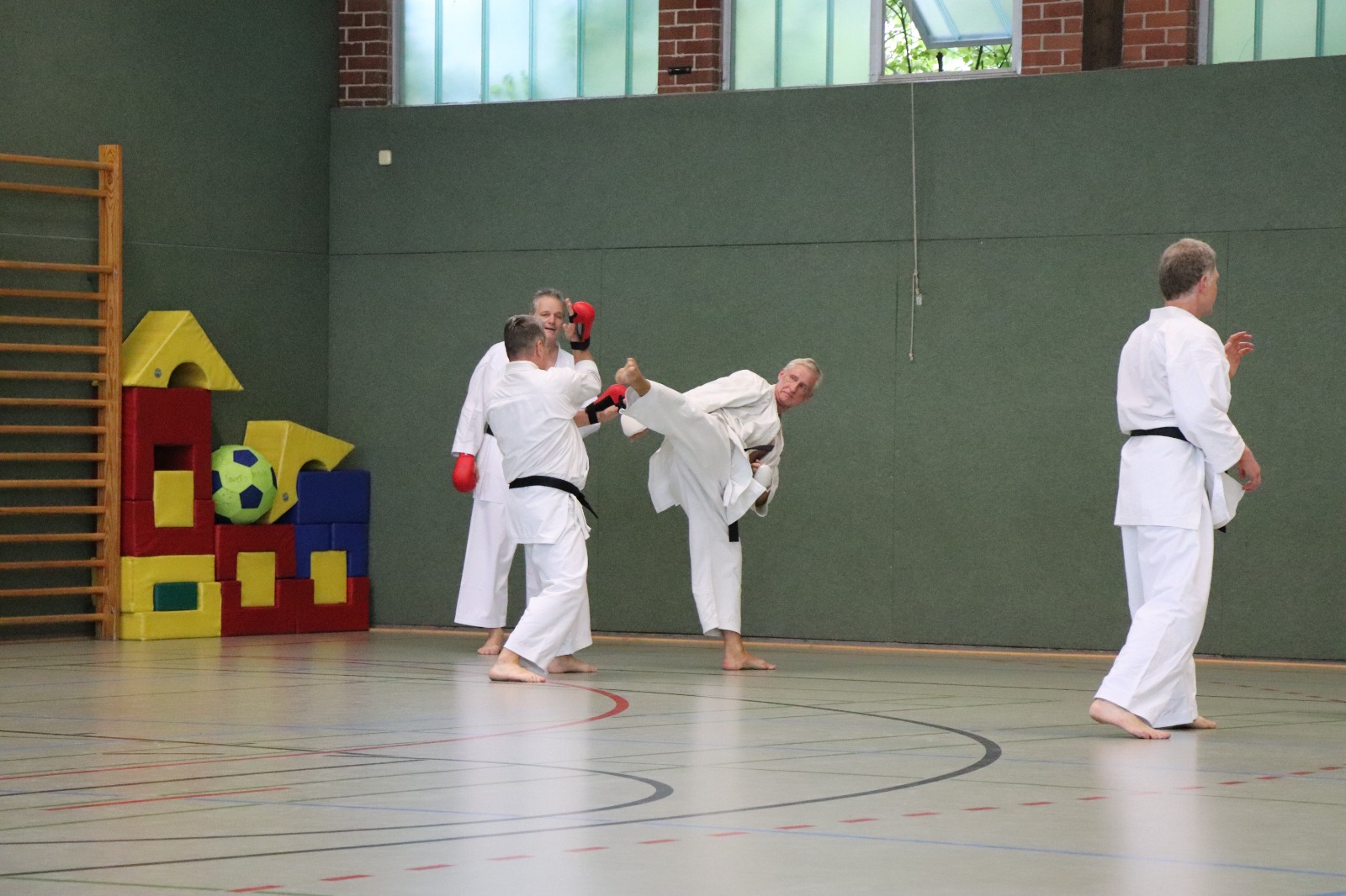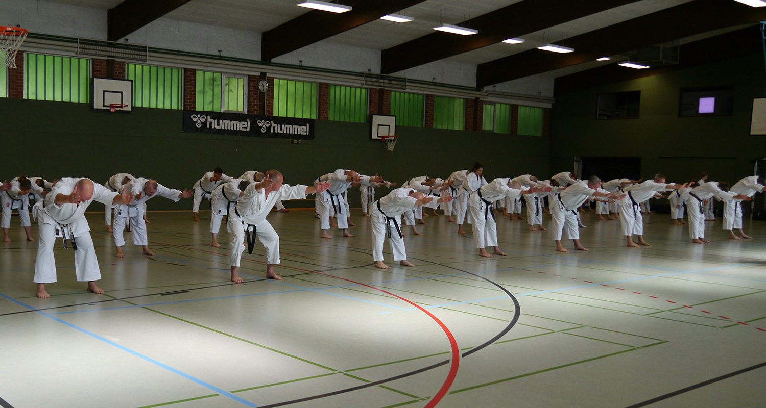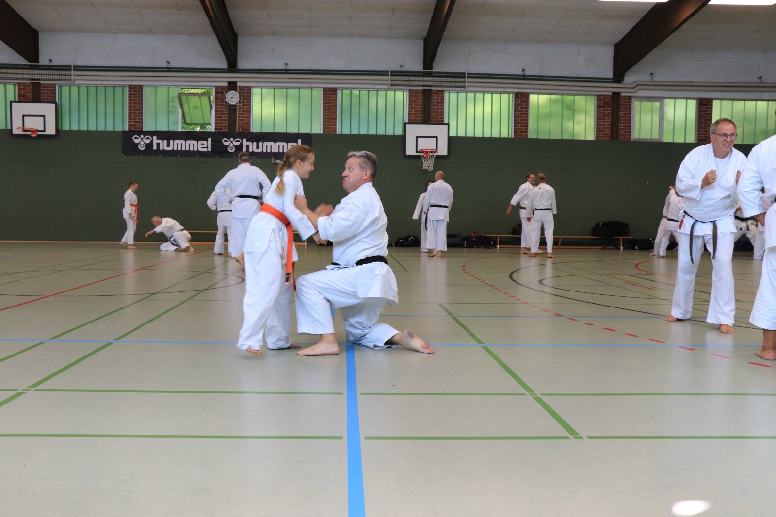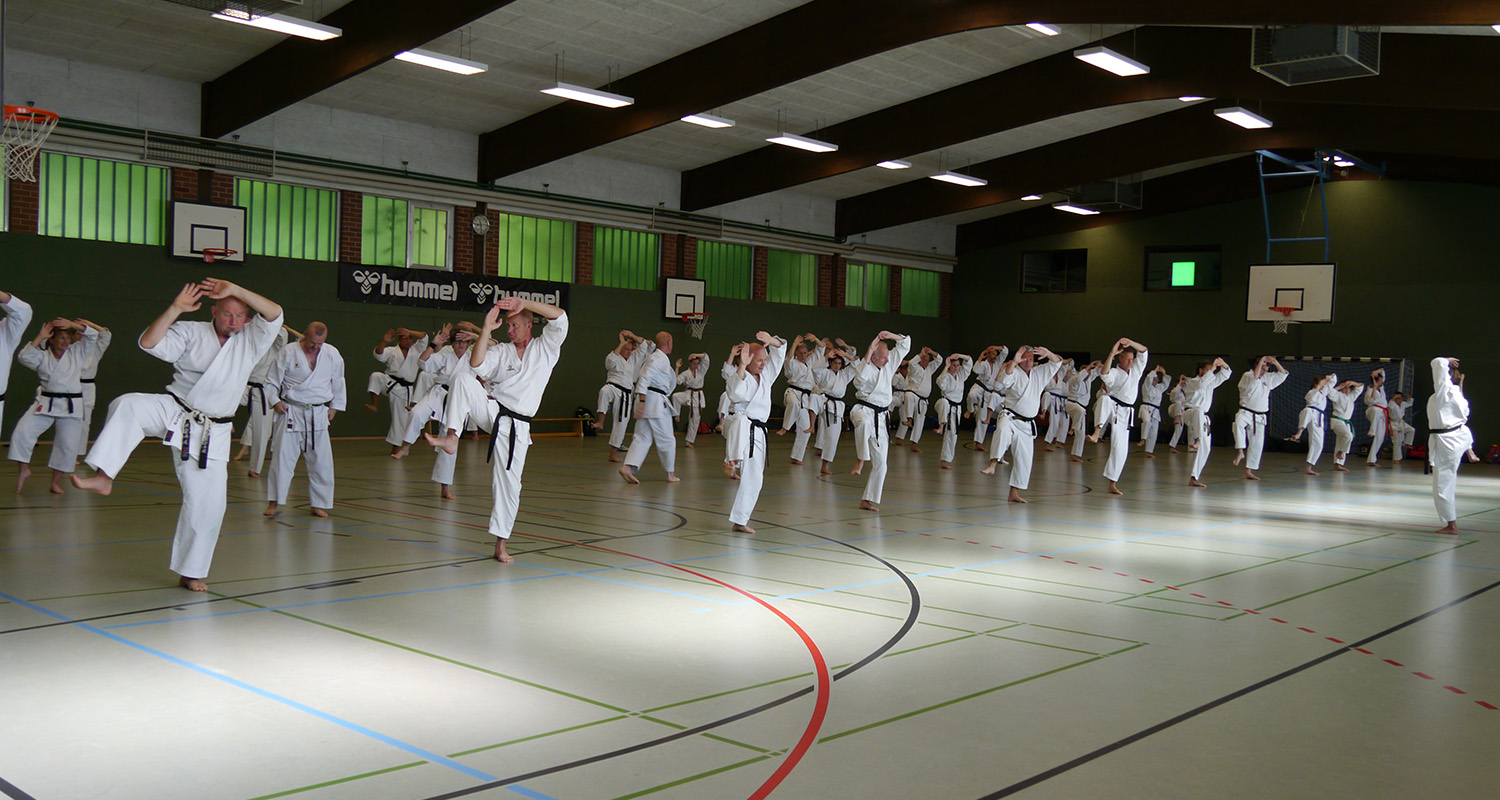 Der Lehrgang fand in den Räumlichkeiten des mediFit statt und wurde vom KDNW Vizepräsident Stefan Krause (7.Dan / Schwarzgurt) geleitet. Der Lehrgang thematisierte die Kata (Abfolge von festgelegten Techniken) „Enpi“. Dazu gab es zunächst ein gemeinsames Aufwärmprogramm von Grün Weiß Trainerin Patricia Schneider mit dem „Kokoro Physical Training“ (ganzheitliches Faszientraining für Kraft, Balance und Flexibilität). Anschließend übernahm der Lemgoer Trainer Stefan Krause. Er brachte den motivierten Karateka den Ablauf der Kata näher. Des Weiteren teilte er sein Wissen im Bereich Bunkai (Anwendung der Technik). Nach der Mittagspause folgte der Bereich Kumite (Freikampf mit Partner). Den Abschluss bildete Grün Weiß Trainer André Dawson mit einer Einheit zur Selbstverteidigung in Bezug auf die zuvor eingeübte Kata.