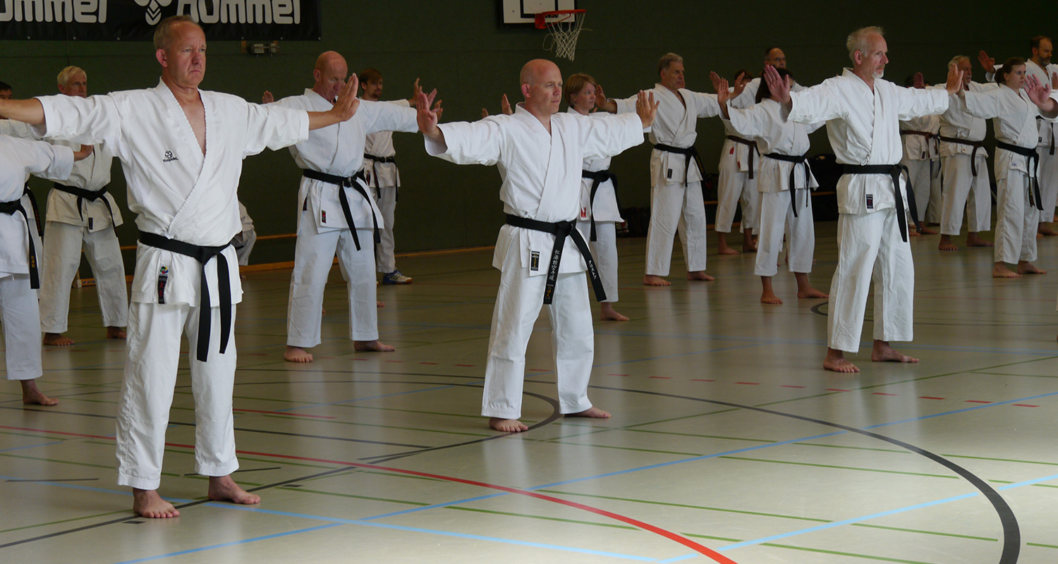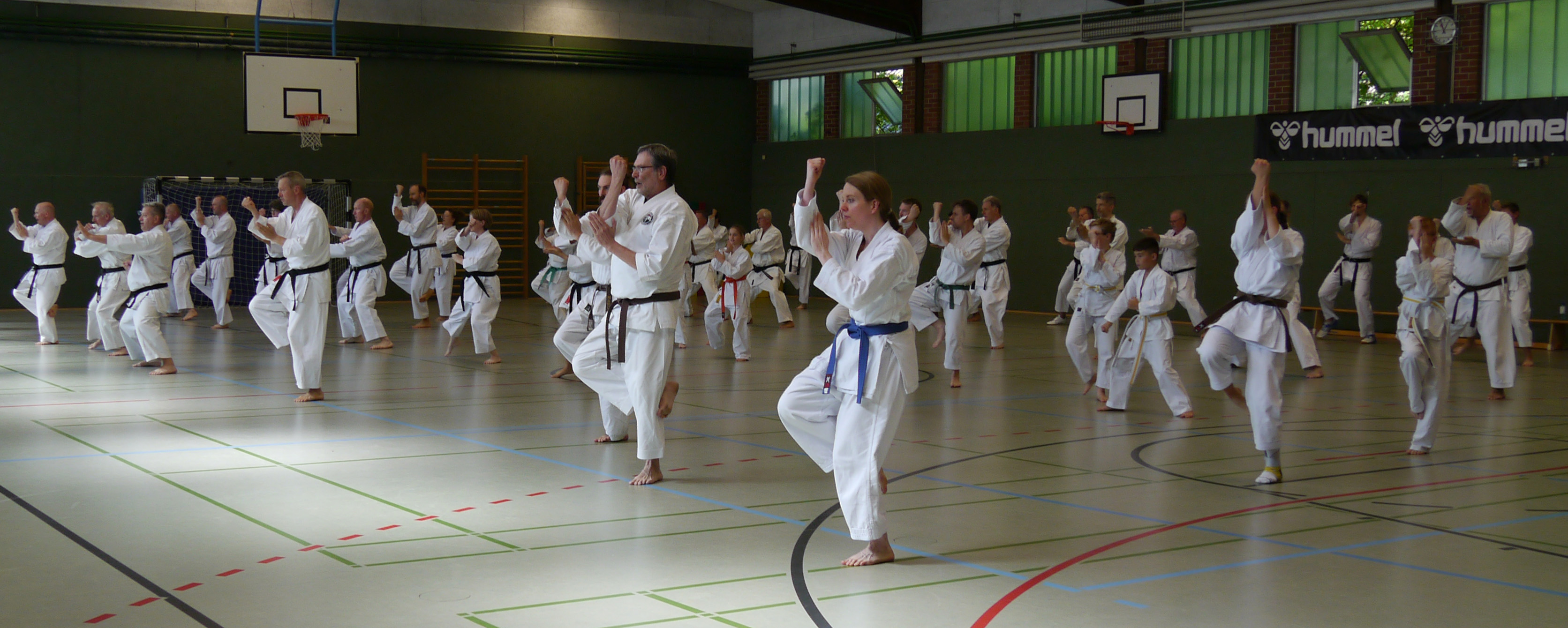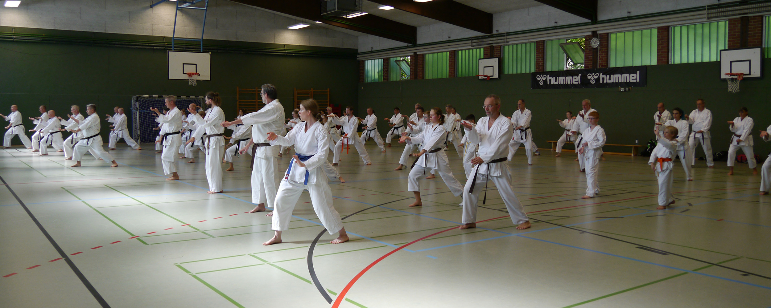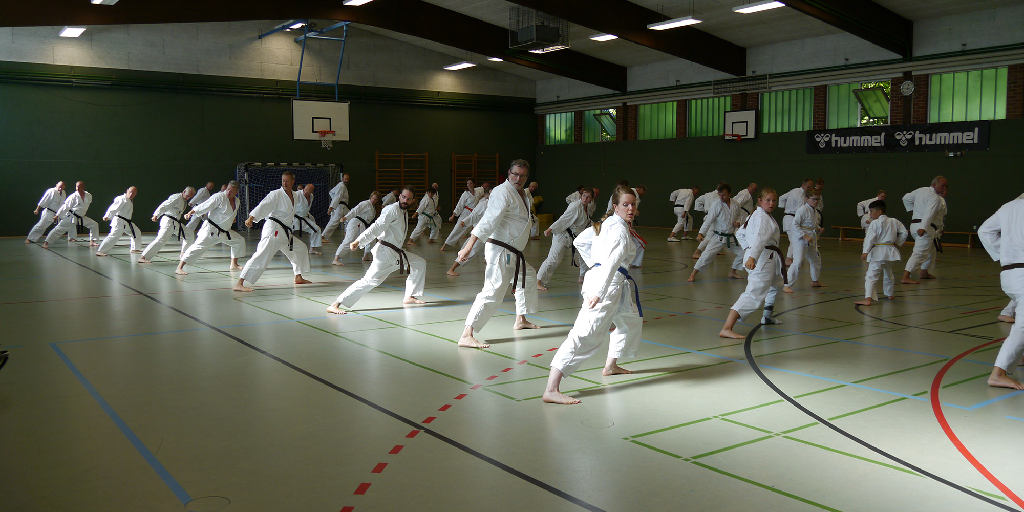 Der Lehrgang fand in den Räumlichkeiten des mediFit statt und wurde vom KDNW Vizepräsident Stefan Krause (7.Dan / Schwarzgurt) geleitet. Der Lehrgang thematisierte die Kata (Abfolge von festgelegten Techniken) „Enpi“. Dazu gab es zunächst ein gemeinsames Aufwärmprogramm von Grün Weiß Trainerin Patricia Schneider mit dem „Kokoro Physical Training“ (ganzheitliches Faszientraining für Kraft, Balance und Flexibilität). Anschließend übernahm der Lemgoer Trainer Stefan Krause. Er brachte den motivierten Karateka den Ablauf der Kata näher. Des Weiteren teilte er sein Wissen im Bereich Bunkai (Anwendung der Technik). Nach der Mittagspause folgte der Bereich Kumite (Freikampf mit Partner). Den Abschluss bildete Grün Weiß Trainer André Dawson mit einer Einheit zur Selbstverteidigung in Bezug auf die zuvor eingeübte Kata.