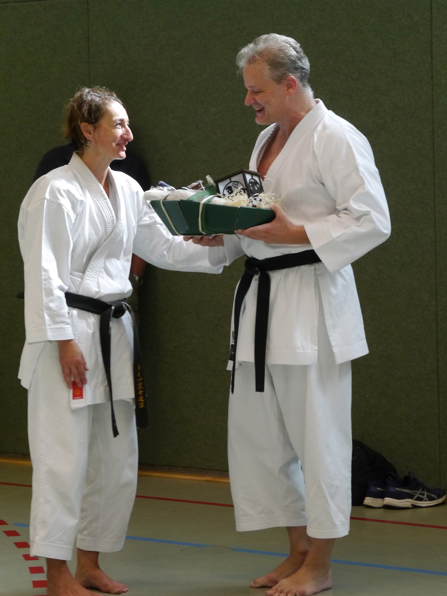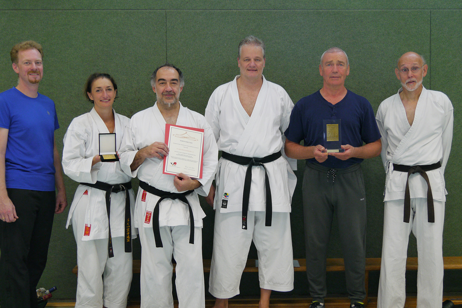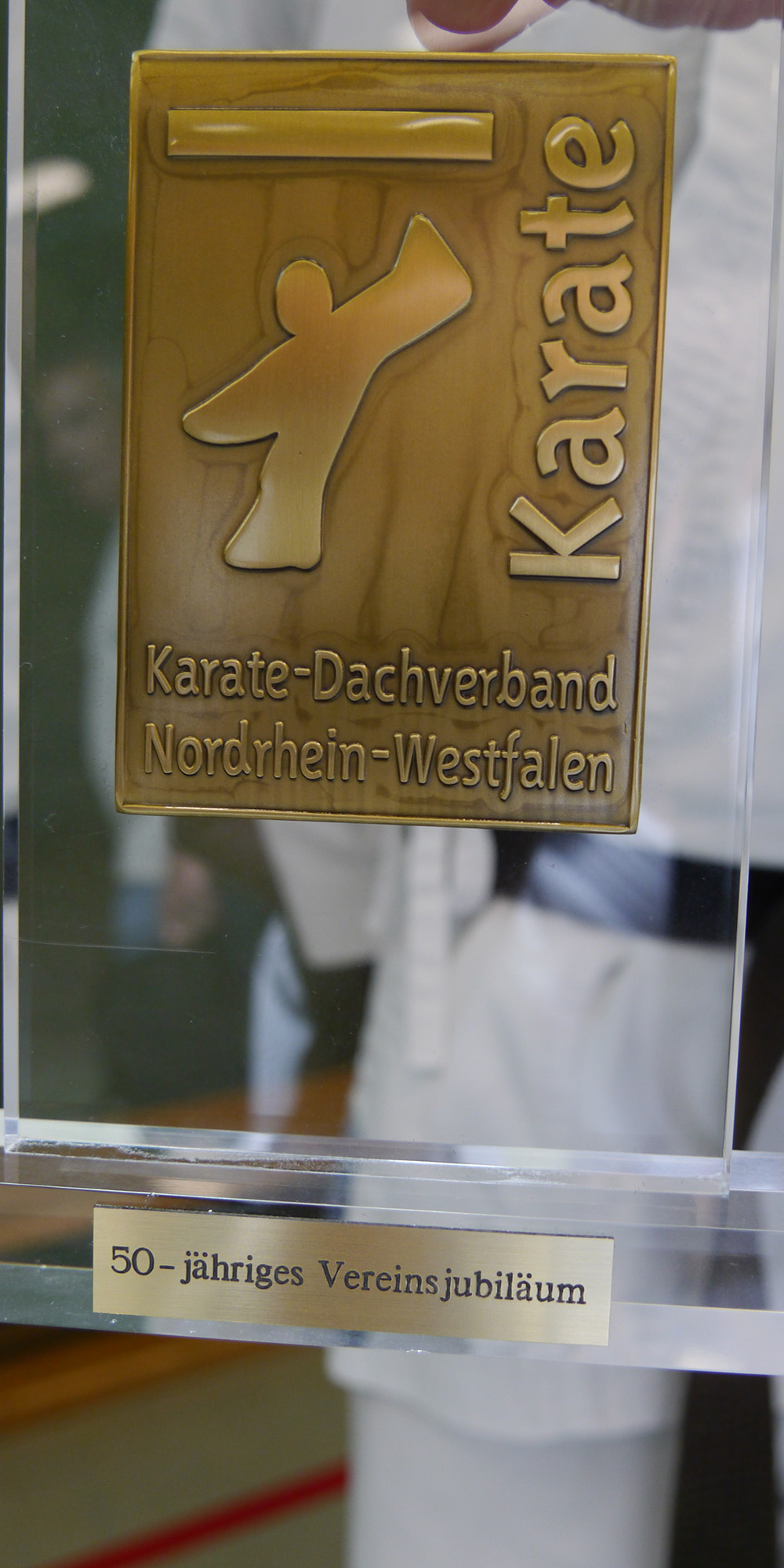 In einem weiteren Programmpunkt überreichte Stefan Krause dem Vorstand der Abteilung im Namen des DKV (Deutscher Karate Dachverband) die goldene Ehrenplakette, als Auszeichnung für das 50 jährige Bestehen. Außerdem wurden einige Mitglieder der Abteilung für ihre langjährigen Verdienste geehrt.