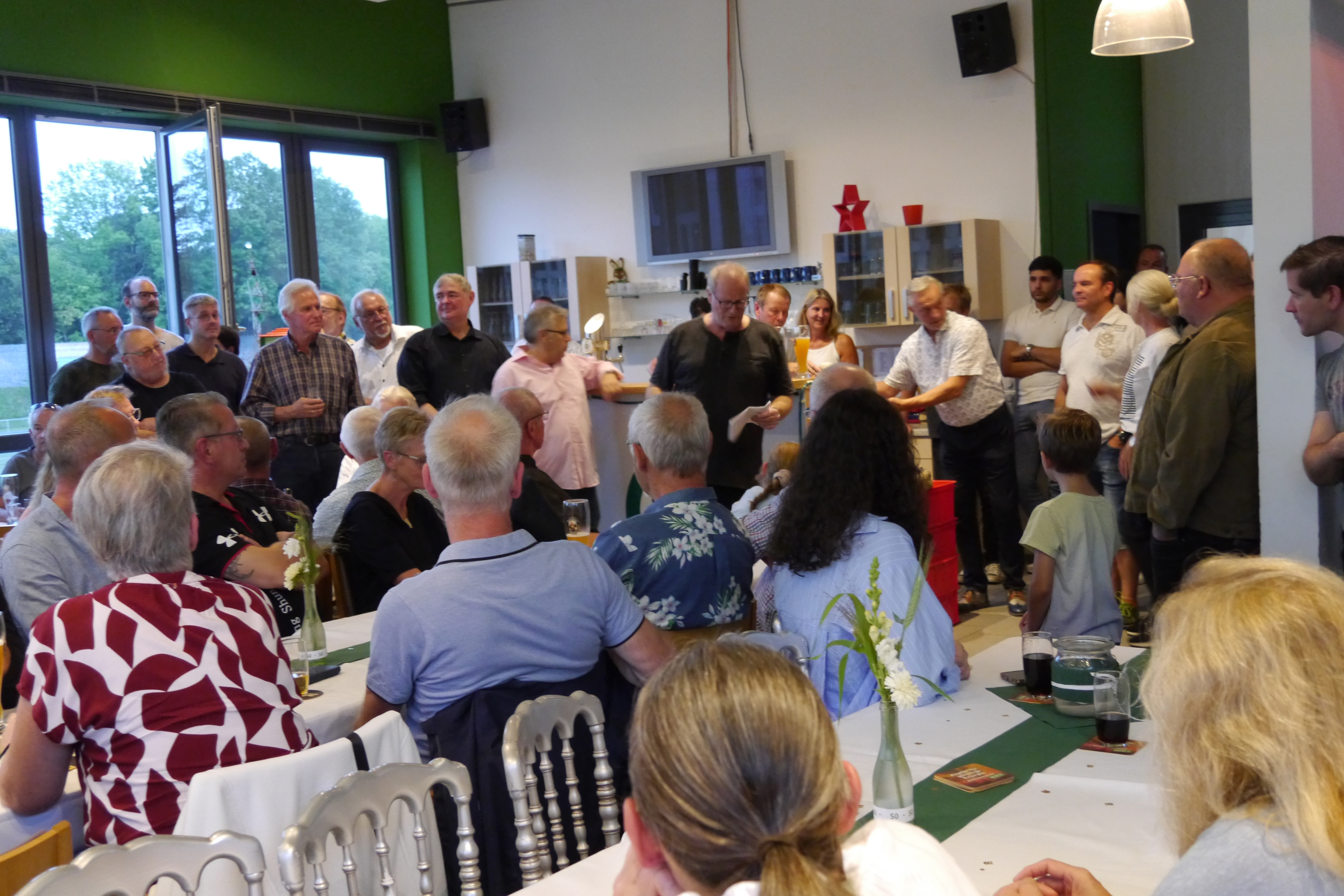 Nach dem sehr erfolgreichen und anstrengenden Lehrgang trafen sich aktive, passive und ehemalige Mitglieder zu einer schönen Feier im Vereinsheim des SC Grün Weiß. Hier wurde der Abend mit einem italienisch angehauchtem Buffet, kühlen Getränken, lockerer Musik und einer Diashow mit Fotos der letzten 50 Jahre abgerundet.