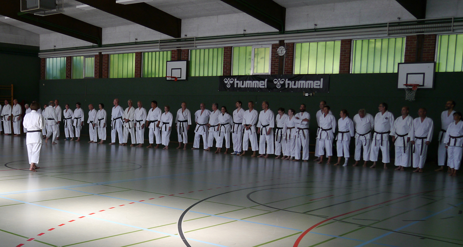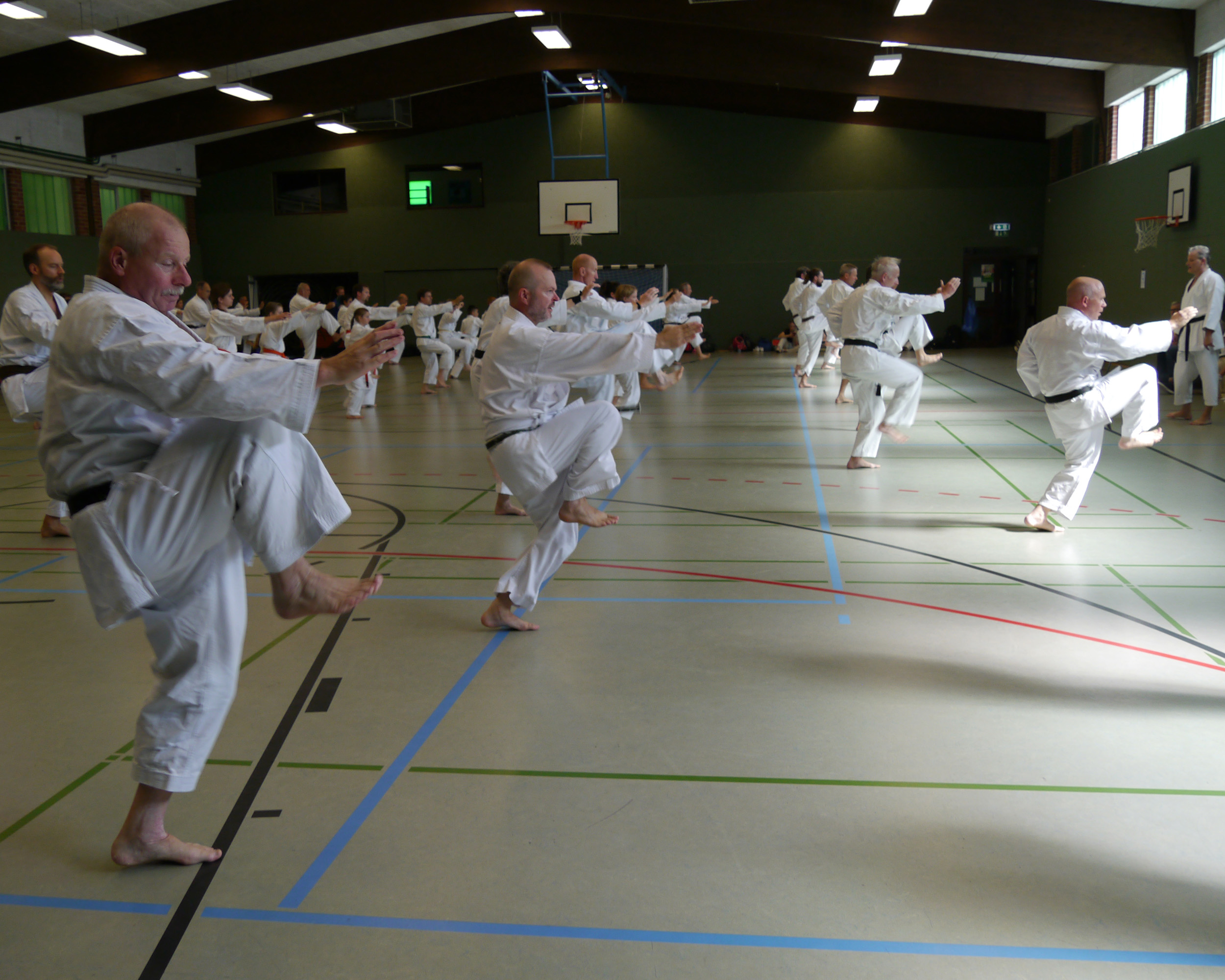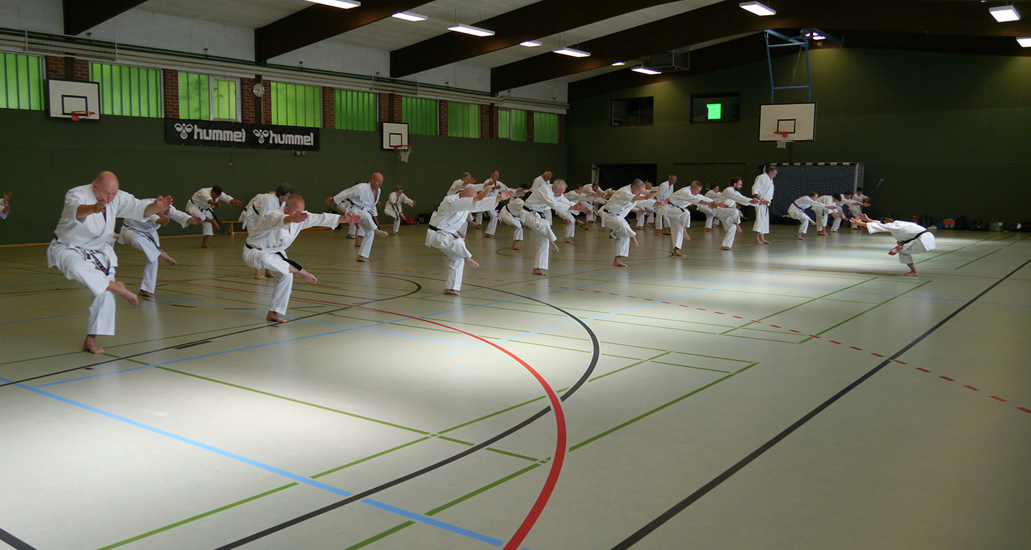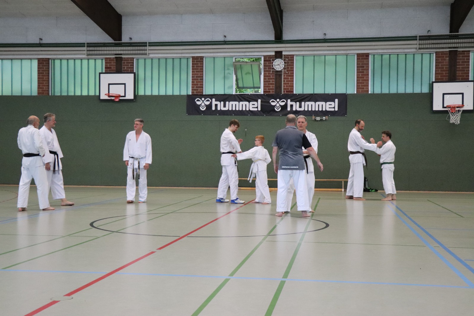 Der Lehrgang fand in den Räumlichkeiten des mediFit statt und wurde vom KDNW Vizepräsident Stefan Krause (7.Dan / Schwarzgurt) geleitet. Der Lehrgang thematisierte die Kata (Abfolge von festgelegten Techniken) „Enpi“. Dazu gab es zunächst ein gemeinsames Aufwärmprogramm von Grün Weiß Trainerin Patricia Schneider mit dem „Kokoro Physical Training“ (ganzheitliches Faszientraining für Kraft, Balance und Flexibilität). Anschließend übernahm der Lemgoer Trainer Stefan Krause. Er brachte den motivierten Karateka den Ablauf der Kata näher. Des Weiteren teilte er sein Wissen im Bereich Bunkai (Anwendung der Technik). Nach der Mittagspause folgte der Bereich Kumite (Freikampf mit Partner). Den Abschluss bildete Grün Weiß Trainer André Dawson mit einer Einheit zur Selbstverteidigung in Bezug auf die zuvor eingeübte Kata.