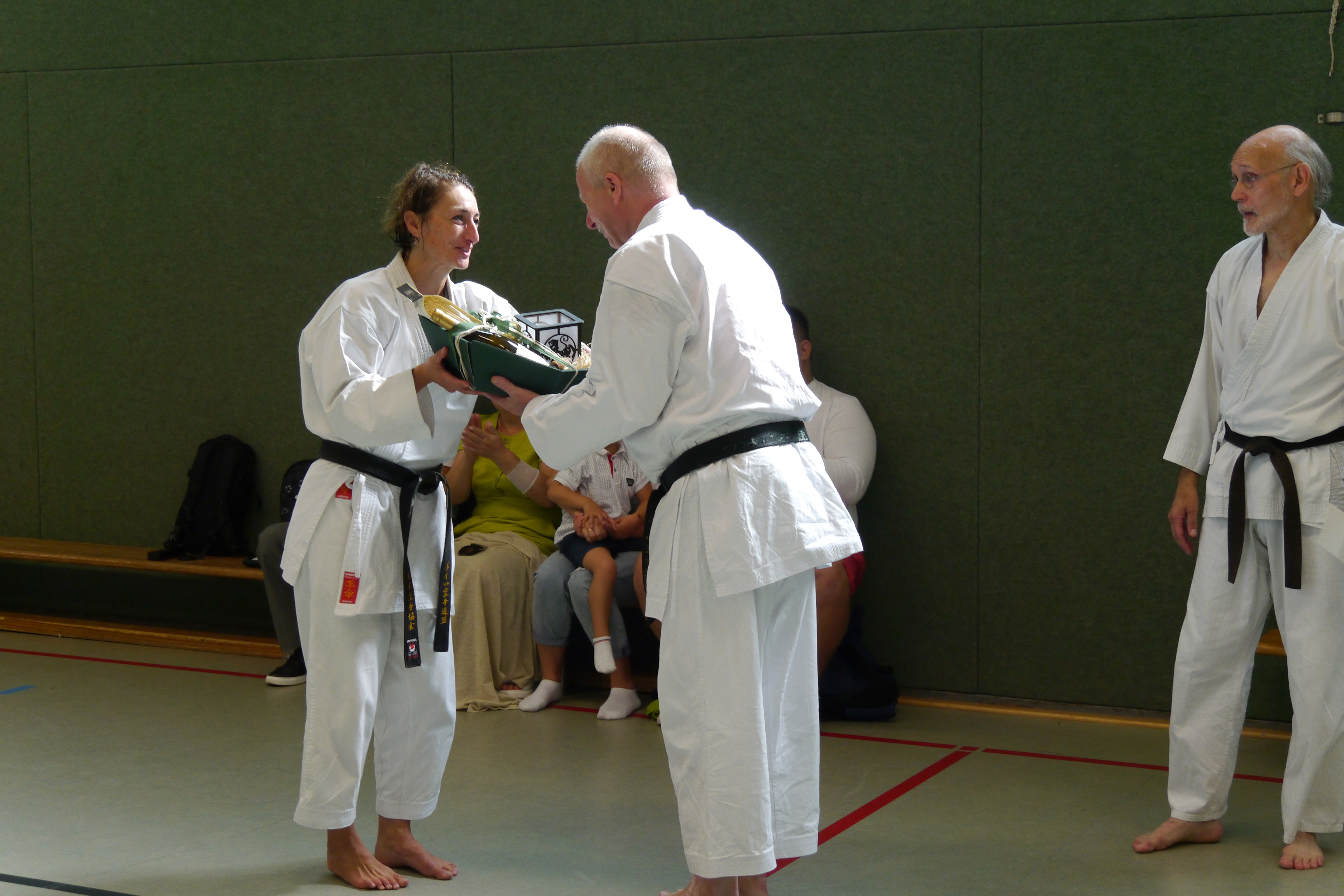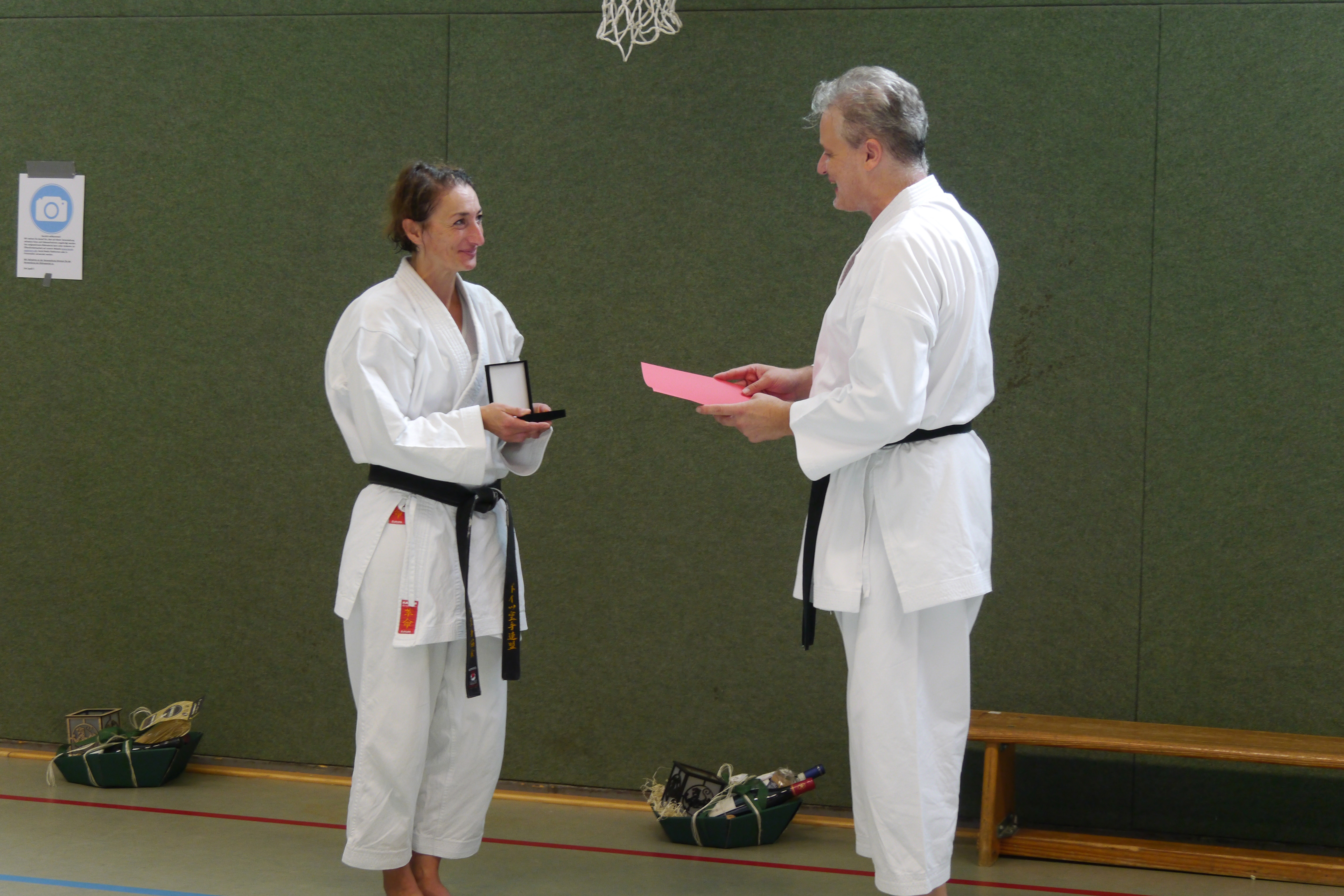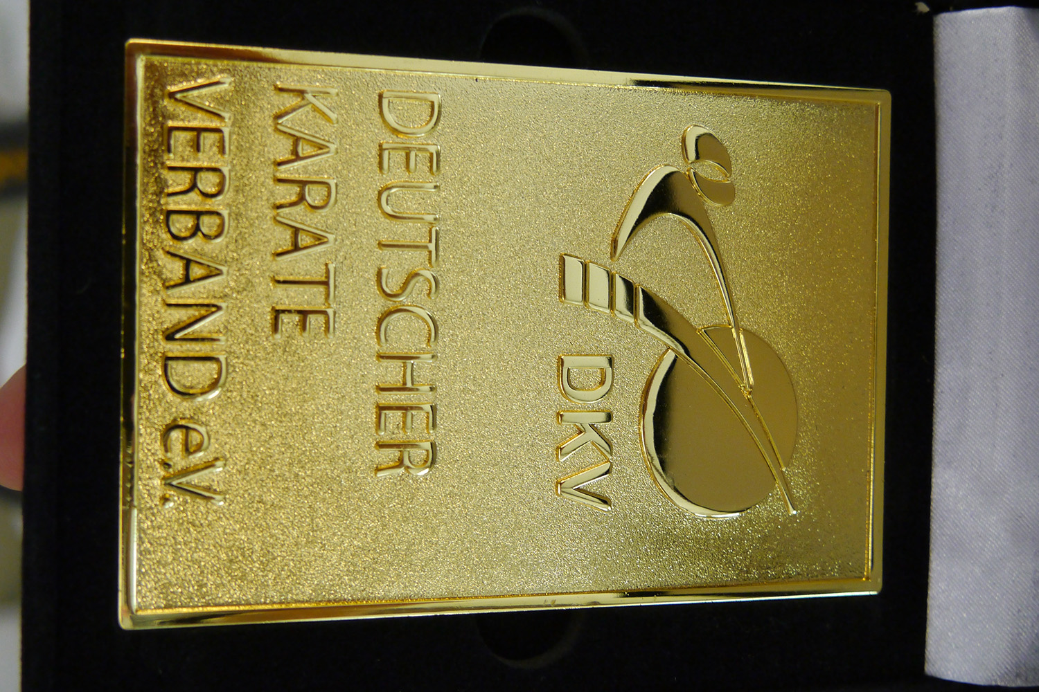 In einem weiteren Programmpunkt überreichte Stefan Krause dem Vorstand der Abteilung im Namen des DKV (Deutscher Karate Dachverband) die goldene Ehrenplakette, als Auszeichnung für das 50 jährige Bestehen. Außerdem wurden einige Mitglieder der Abteilung für ihre langjährigen Verdienste geehrt.