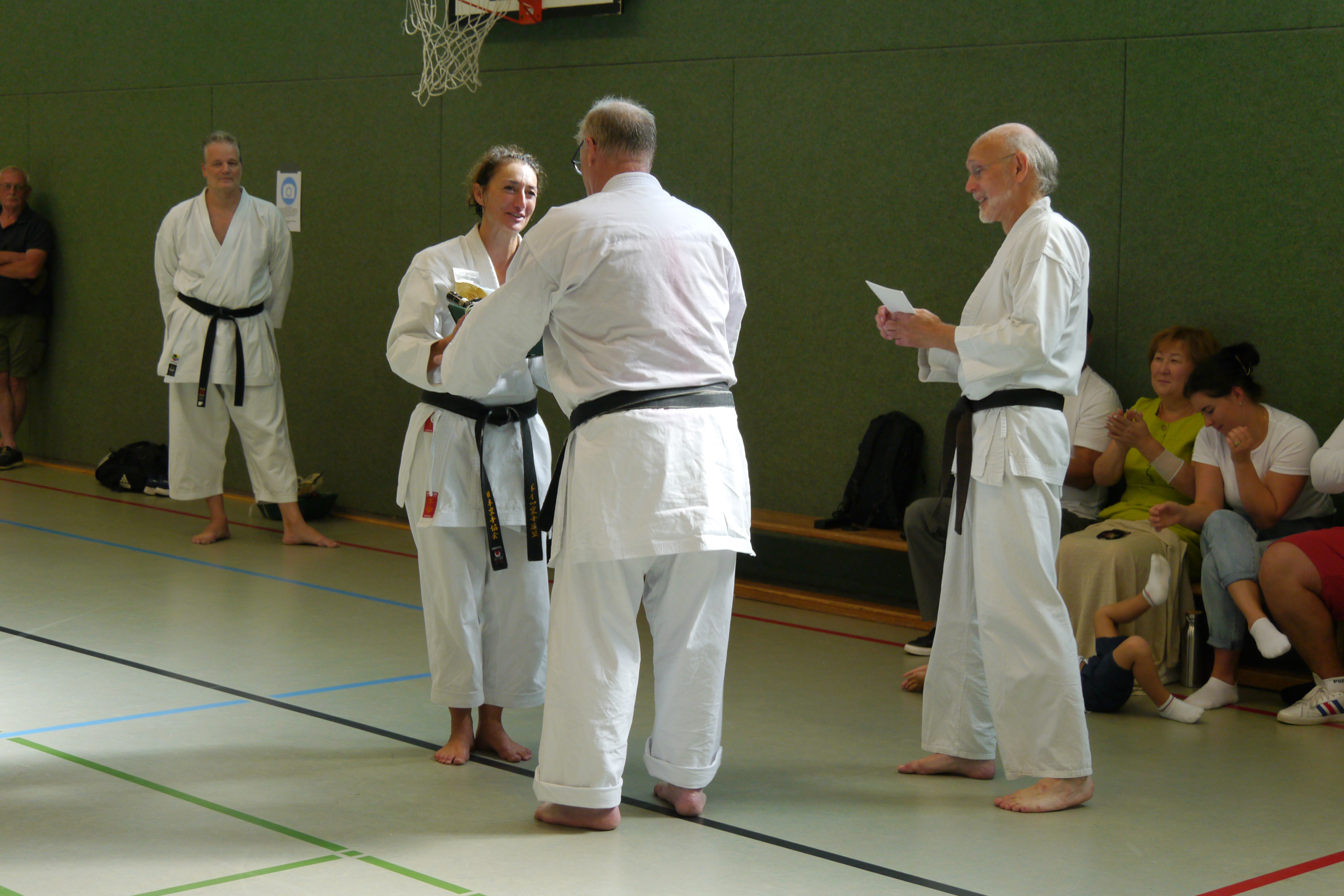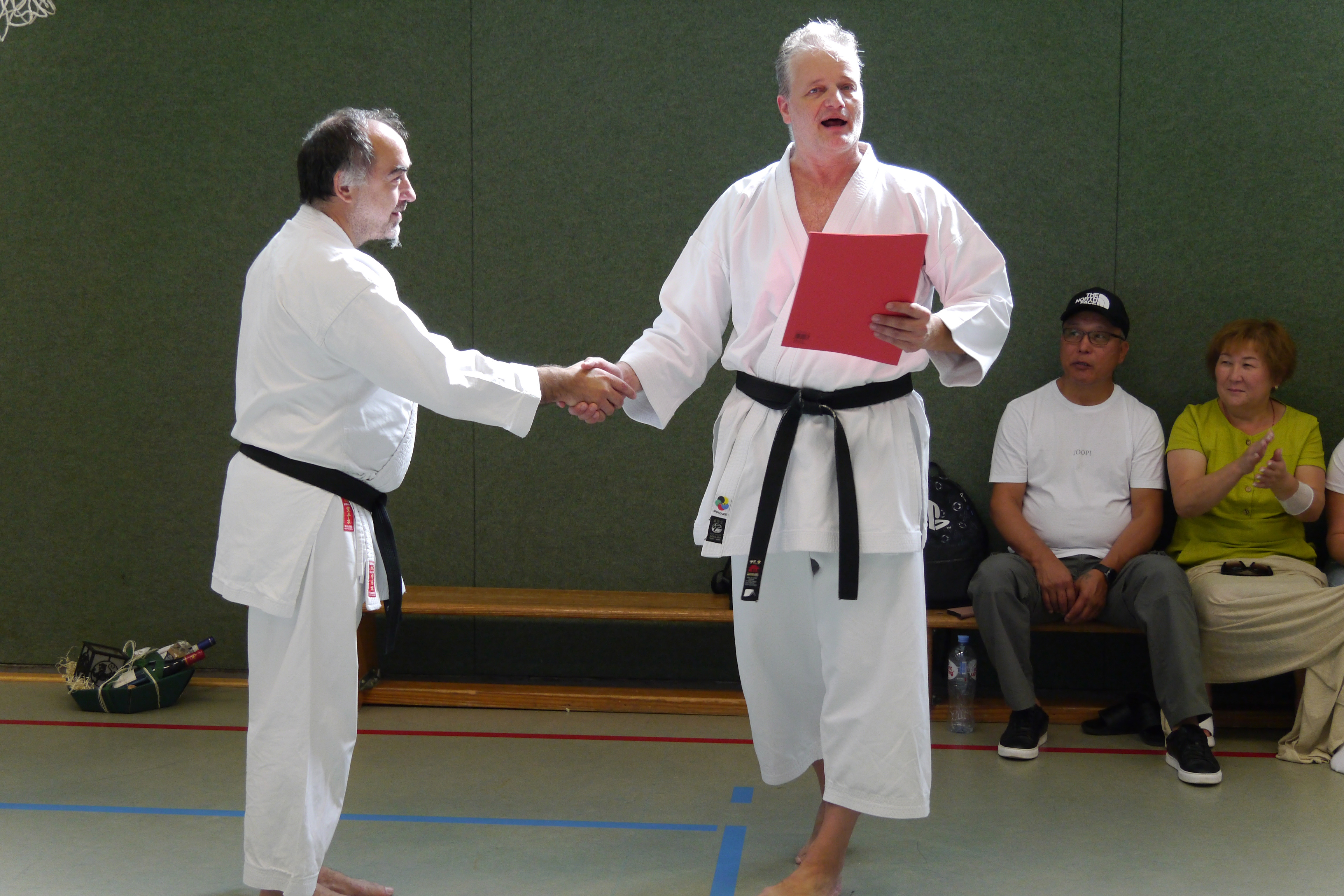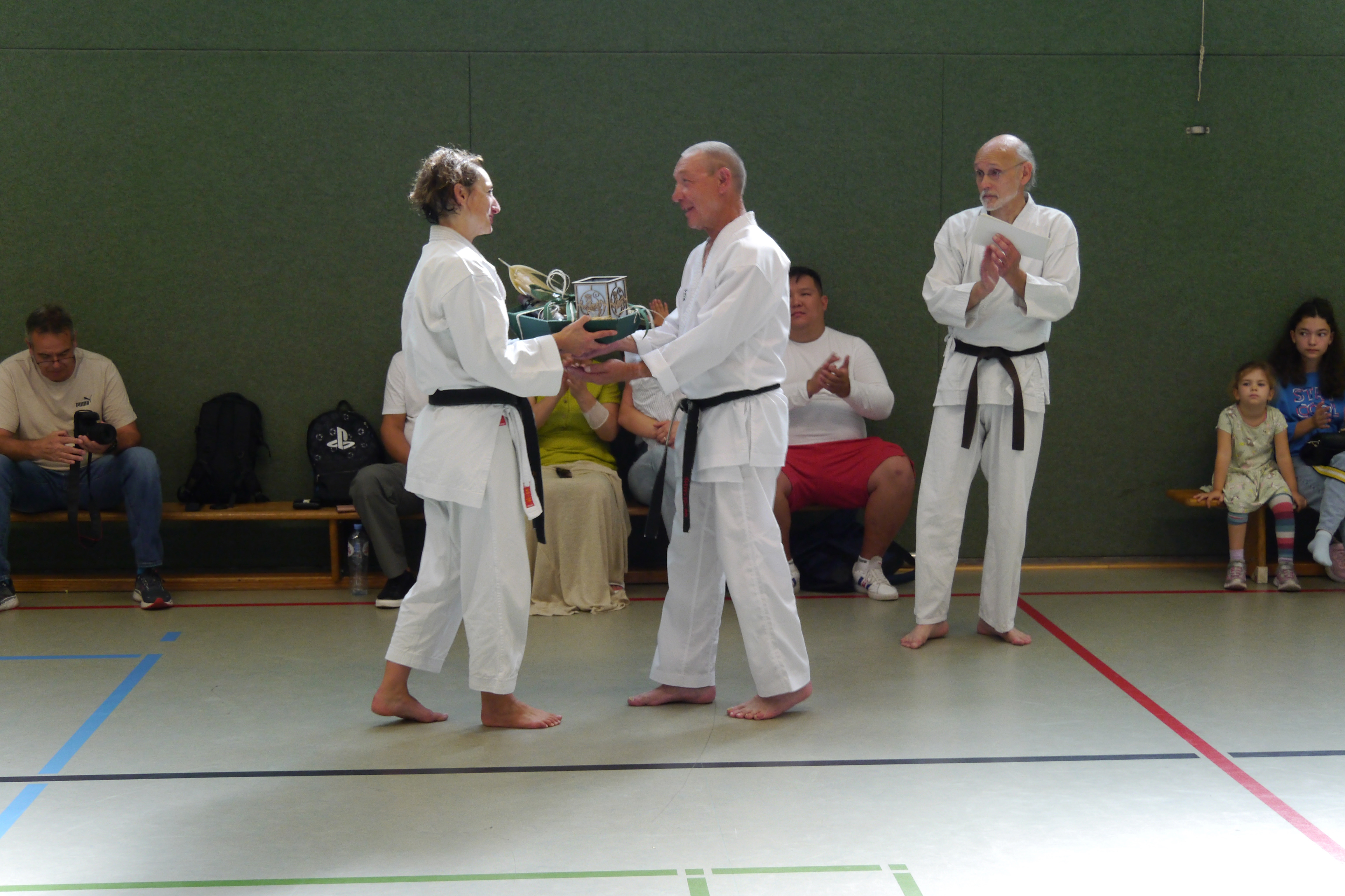 In einem weiteren Programmpunkt überreichte Stefan Krause dem Vorstand der Abteilung im Namen des DKV (Deutscher Karate Dachverband) die goldene Ehrenplakette, als Auszeichnung für das 50 jährige Bestehen. Außerdem wurden einige Mitglieder der Abteilung für ihre langjährigen Verdienste geehrt.
