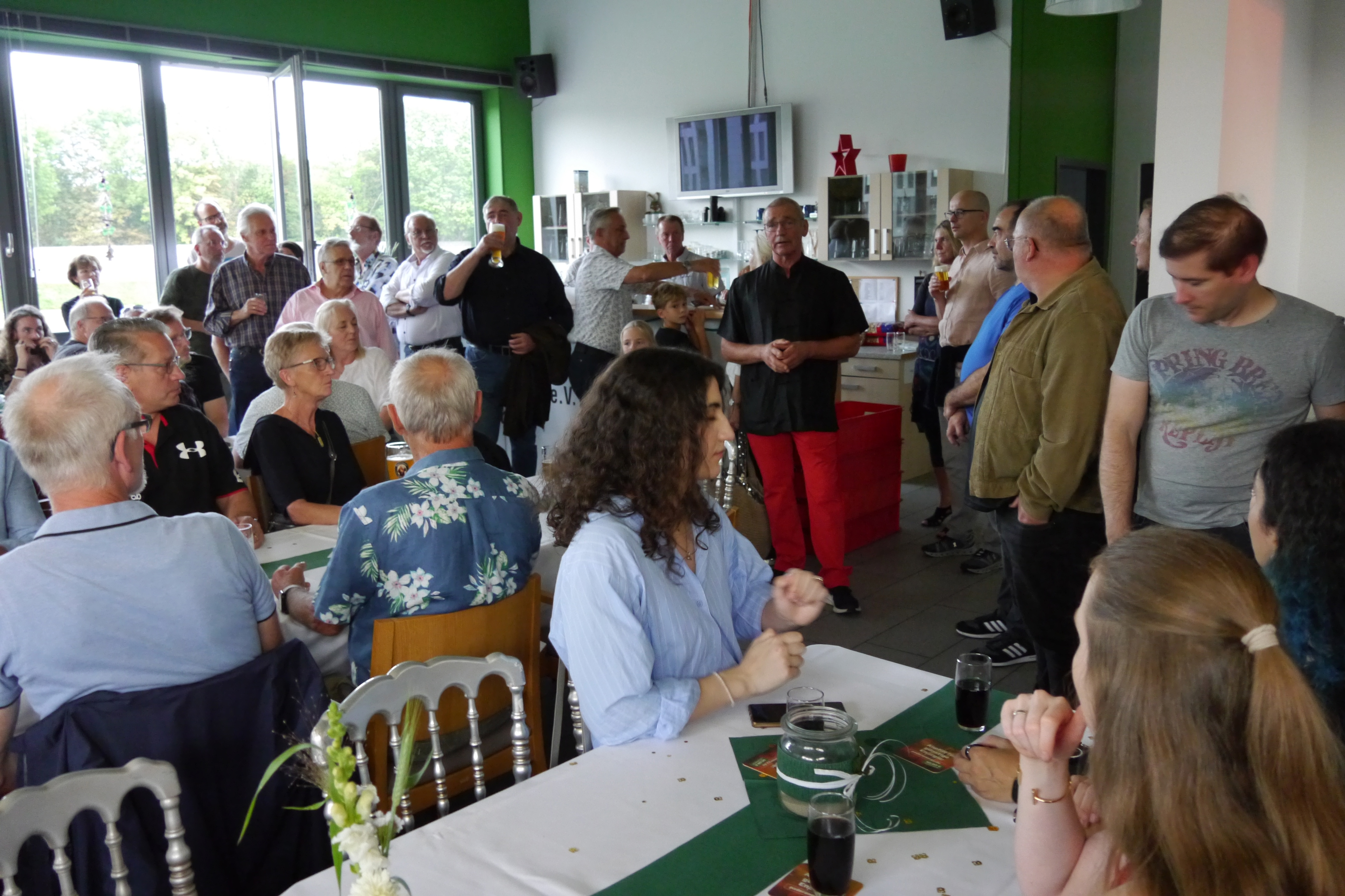 Nach dem sehr erfolgreichen und anstrengenden Lehrgang trafen sich aktive, passive und ehemalige Mitglieder zu einer schönen Feier im Vereinsheim des SC Grün Weiß. Hier wurde der Abend mit einem italienisch angehauchtem Buffet, kühlen Getränken, lockerer Musik und einer Diashow mit Fotos der letzten 50 Jahre abgerundet.