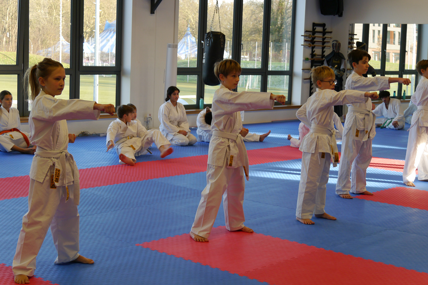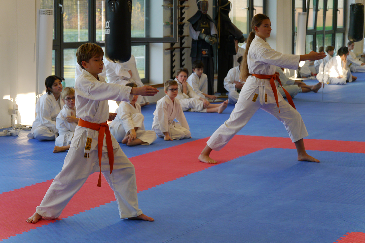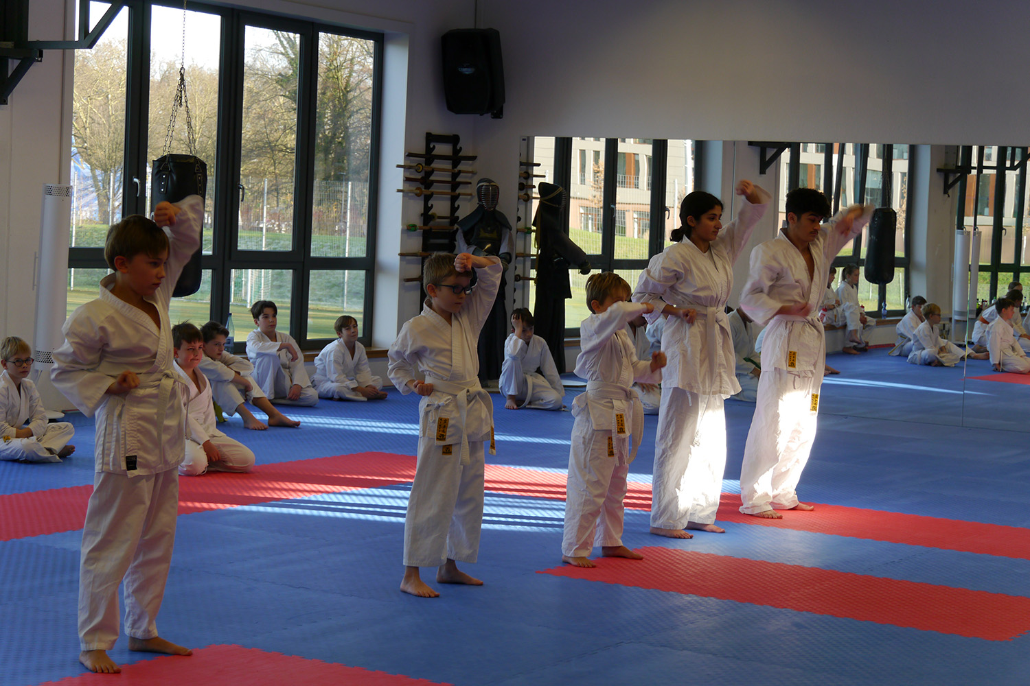 Am Samstag den 30.11.2024 trafen sich 27 motivierte Kinder und Jugendliche der Karate Abteilung des SC Grün Weiß Vereins zur Kyu-Prüfung (= Gürtelprüfung). Die Prüflinge wurden im Vorfeld von dem Trainerteam bestens vorbereitet und konnten mit den gelernten Fähigkeiten bei der Prüfung überzeugen. Die Karateka mussten sich unter den Augen der Prüferin Patricia Schneider und des Prüfers Alessandro Dell´Aere in den Kategorien Kihon (Grundtechniken), Kata (festgelegte Abfolge von Techniken), Bunkai (Anwendung der Technik) und Kumite (Partnerübungen) beweisen. Nach einem gemeinsamen Aufwärmen und einer erfolgreichen Prüfung bekamen die Prüflinge ihre neuen Gürtel und die Urkunden überreicht.