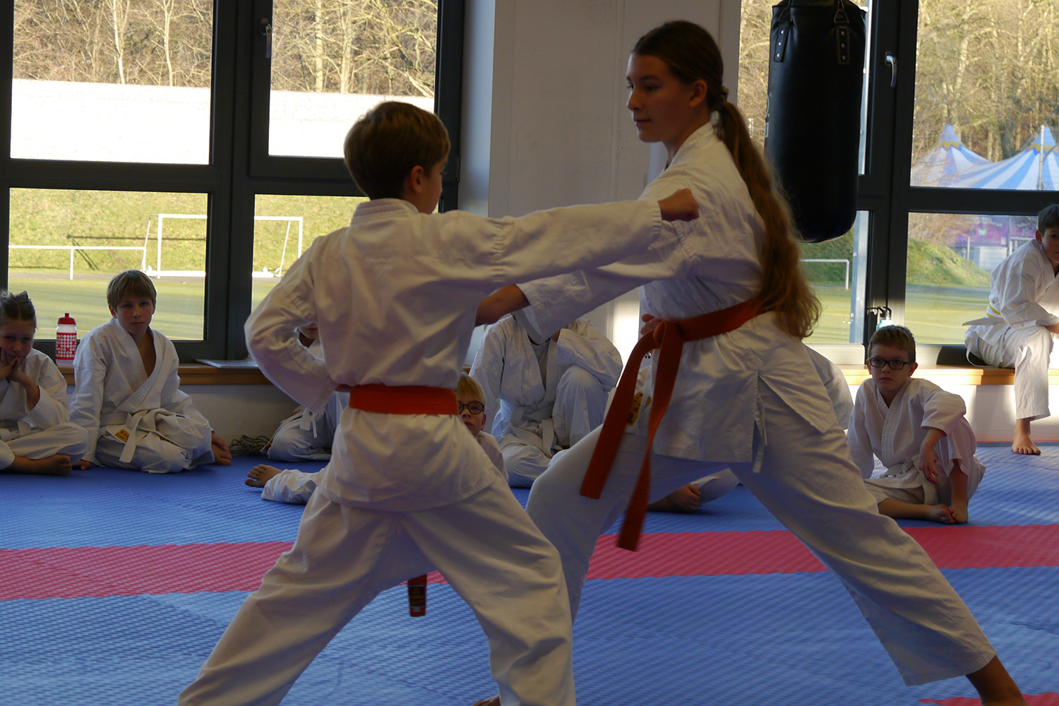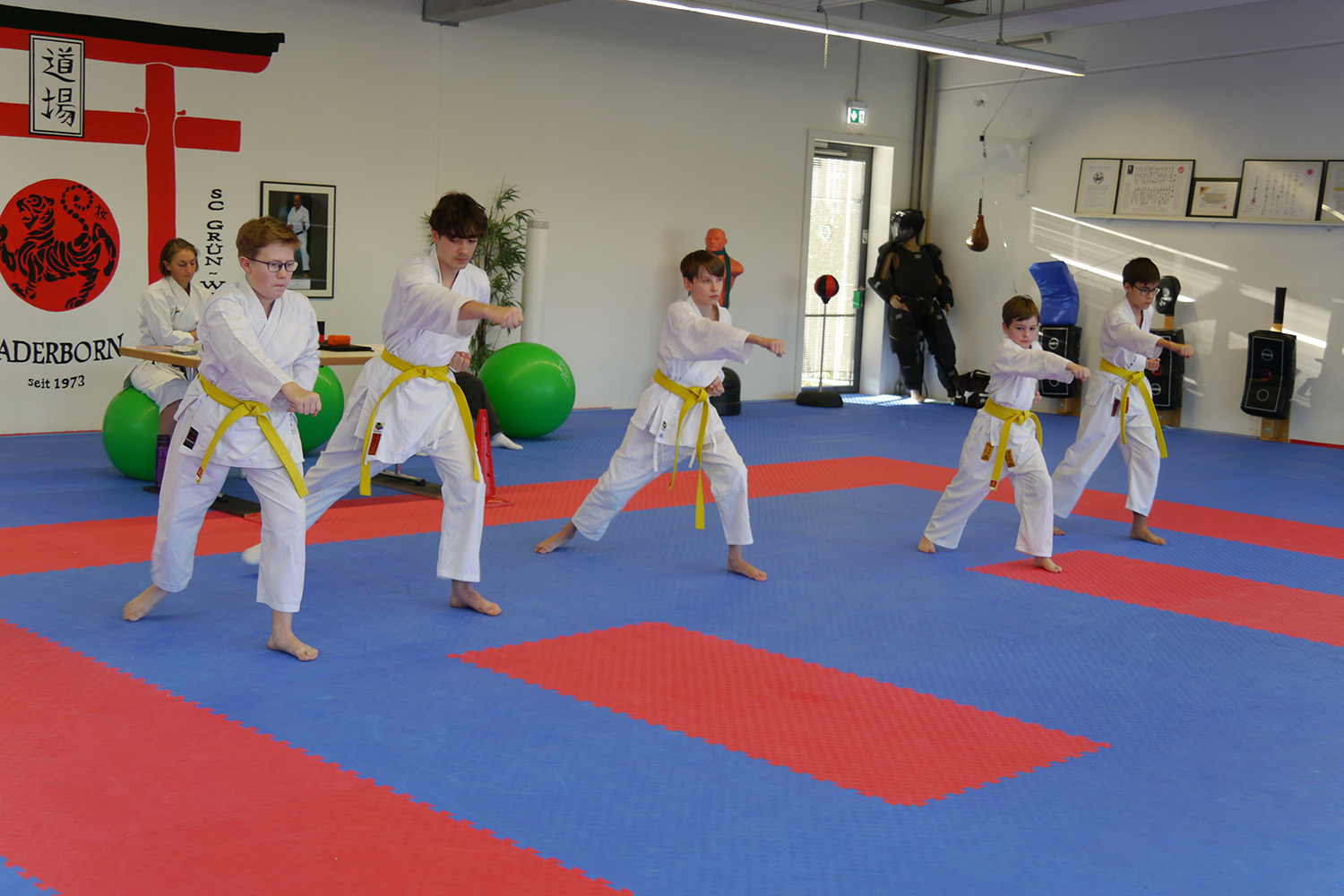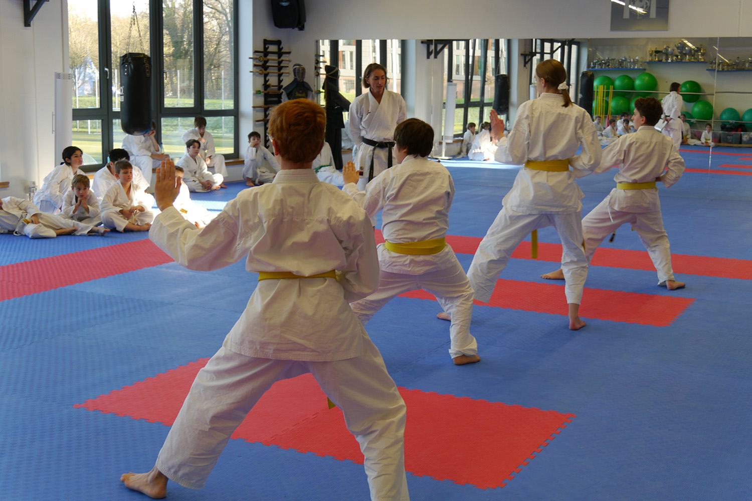 Am Samstag den 30.11.2024 trafen sich 27 motivierte Kinder und Jugendliche der Karate Abteilung des SC Grün Weiß Vereins zur Kyu-Prüfung (= Gürtelprüfung). Die Prüflinge wurden im Vorfeld von dem Trainerteam bestens vorbereitet und konnten mit den gelernten Fähigkeiten bei der Prüfung überzeugen. Die Karateka mussten sich unter den Augen der Prüferin Patricia Schneider und des Prüfers Alessandro Dell´Aere in den Kategorien Kihon (Grundtechniken), Kata (festgelegte Abfolge von Techniken), Bunkai (Anwendung der Technik) und Kumite (Partnerübungen) beweisen. Nach einem gemeinsamen Aufwärmen und einer erfolgreichen Prüfung bekamen die Prüflinge ihre neuen Gürtel und die Urkunden überreicht.