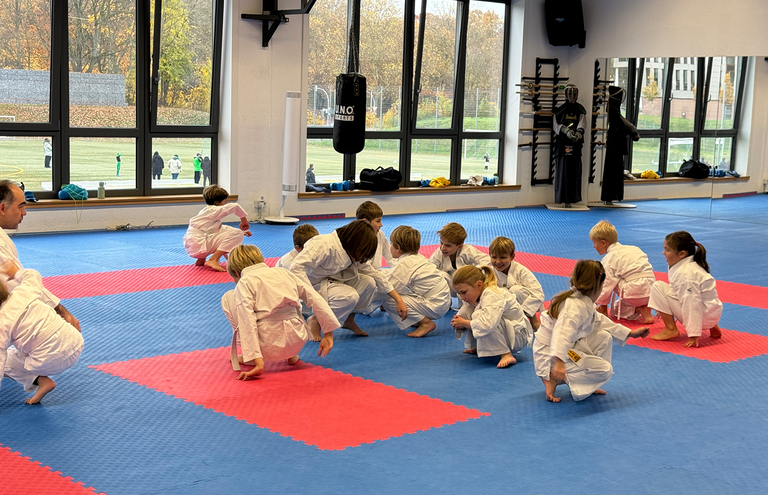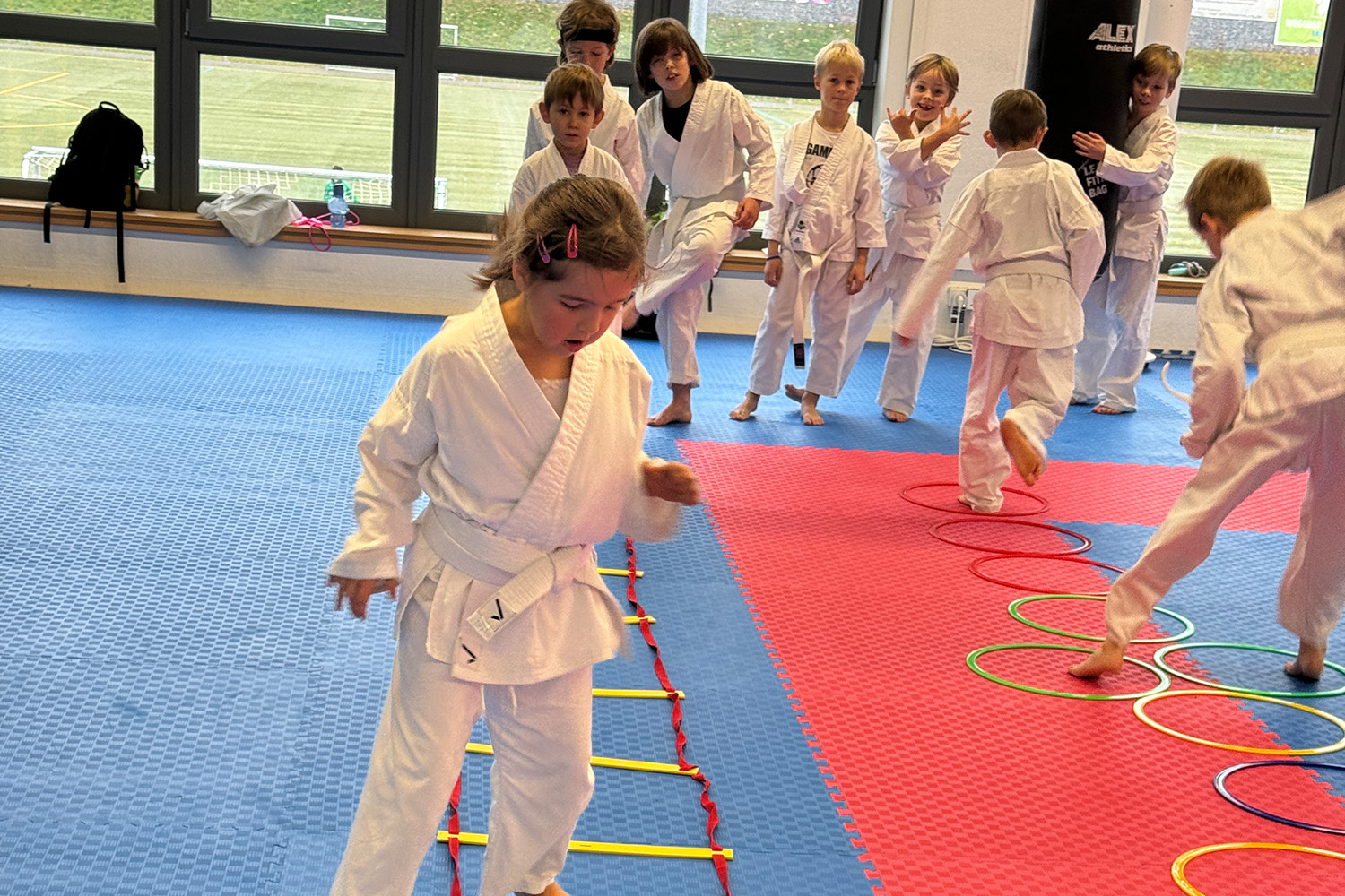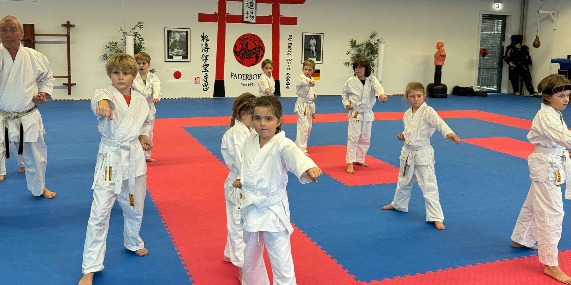 Herzlichen Glückwunsch an die Karate-Kids zur bestandenen Prüfung: (v.l.n.r.) Luke, Leonard, Vera, Anastasia, Evodia, Theodor; (h.l.n.r.) Jonathan, Jonathan, Mika, Henry, Oskar, Kalle und Sam.