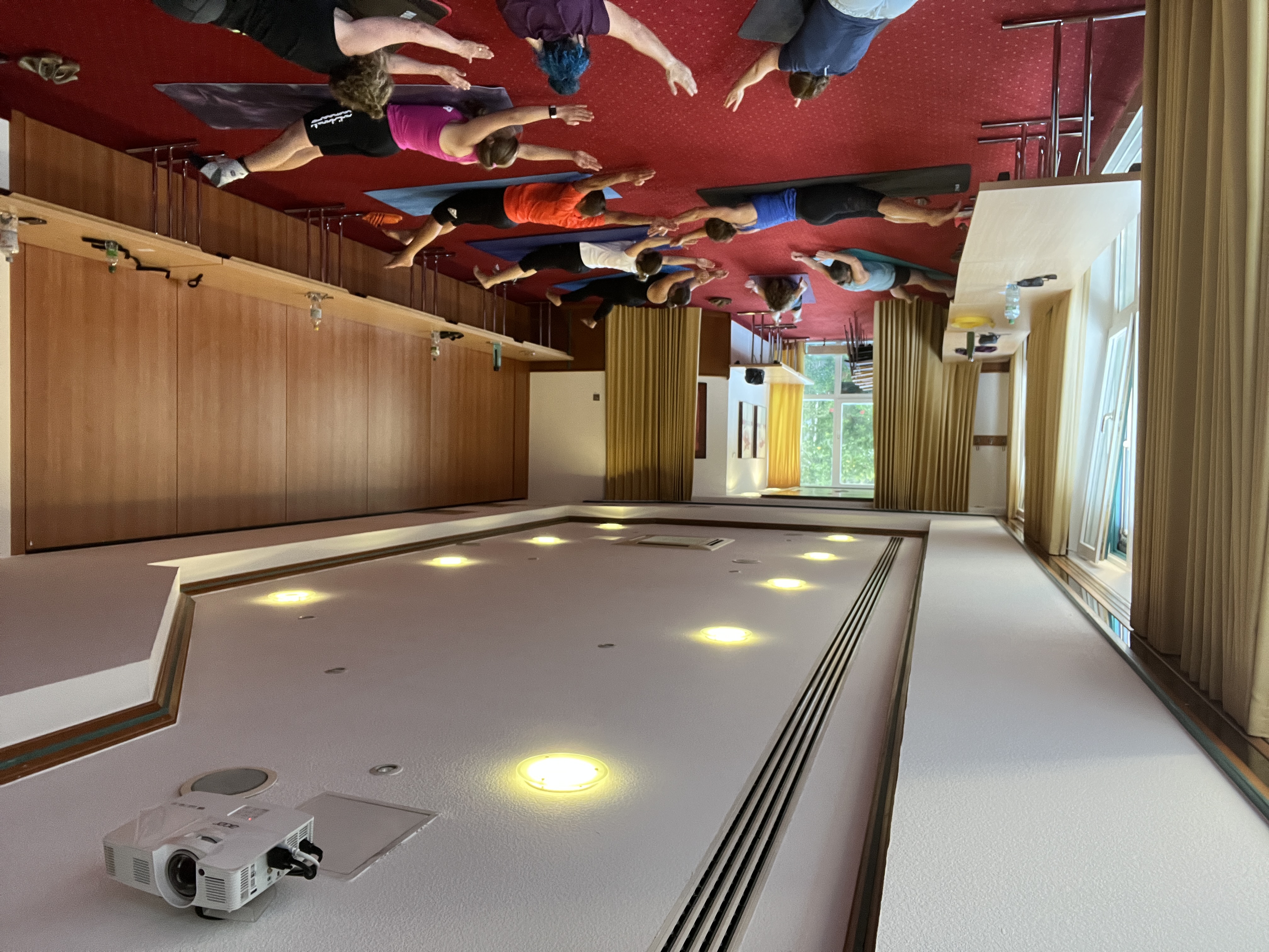 Die Tage starten mit einer Trainingseinheit Kokoro Physical Training (ganzheitliches Faszientraining für Kraft, Balance und Flexibilität) in einem vom Hotel gestellten Konferenzraum.